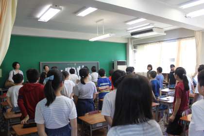 6年生の教室には、若林町会の方が取材に来てくださいました。