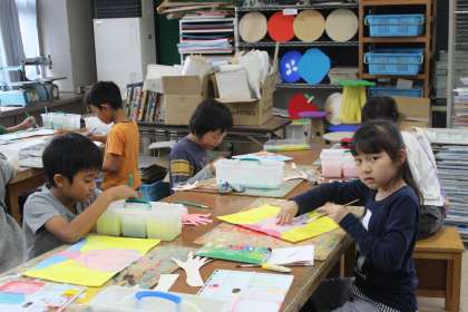 3年生は図工の時間に、半立体の作品制作に取り組んでいます。