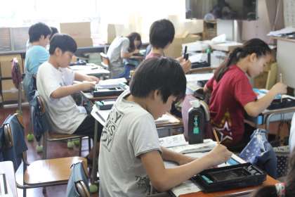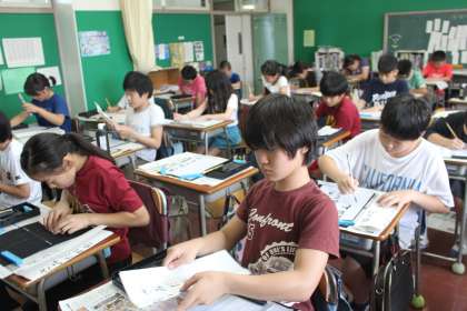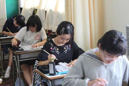 6年生は書写で松尾芭蕉の俳句を書きました。