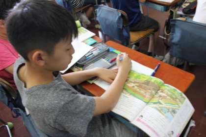 学習の様子を観に来ていた校長先生に、最後は朗誦のプレゼント!