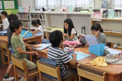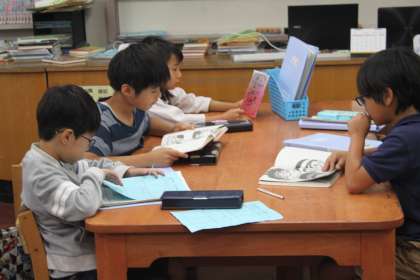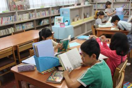 とても静かな図書室で、ページをめくる音が響きます。