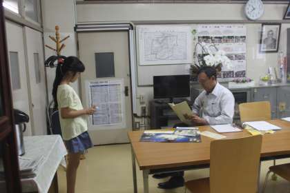 島崎藤村の「小諸なる古城のほとり」を暗唱する6年生。