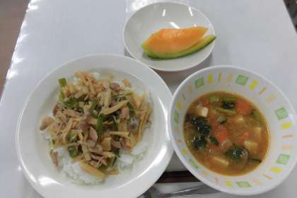 【献立】チンジャオロース丼・麻婆汁・メロン・牛乳