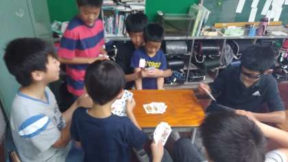 今日も休み時間に、一緒にトランプを楽しんでいました。