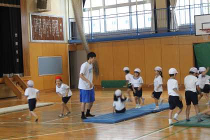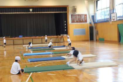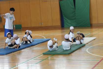 みんなで協力して敷いたマットの上で、ゴロンゴロンと運動をします。