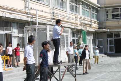 若小の一週間のはじまりを告げる全校朝会がありました。