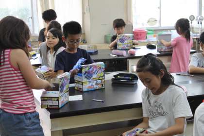 愛おしそうに実験セットを見つめるかわいい4年生たちです!