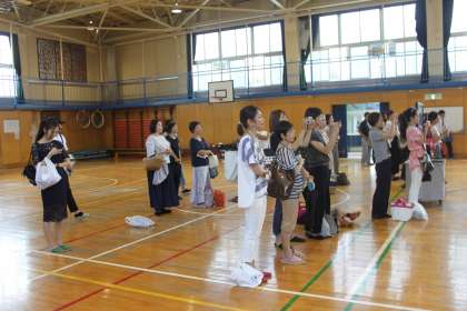保護者会の前に、恒例になっている体育館での発表活動をします。