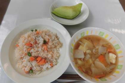 【献立】鮭ごはん・豚汁・メロン・牛乳