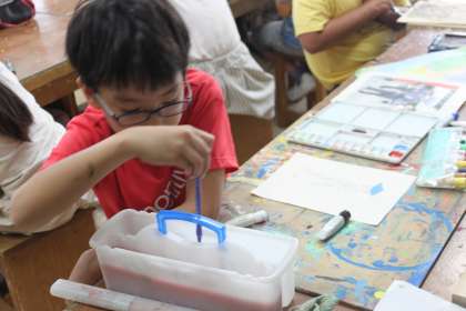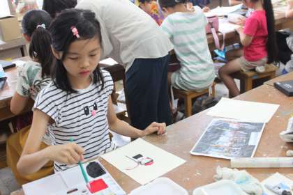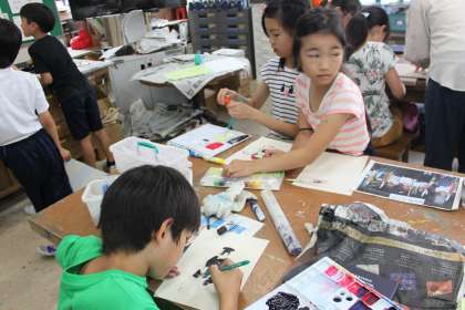 4年生は図工の時間に幕末維新祭りのポスター作りをしています。