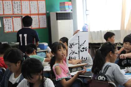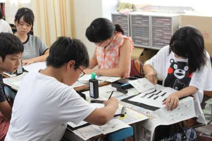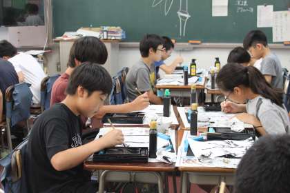 6年生は社会科で学習した室町文化のうち、水墨画体験をしました。