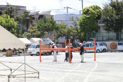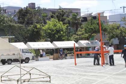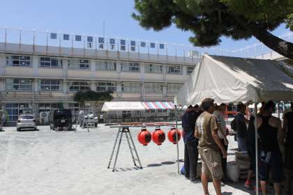 子どもたちが学習している間の校庭では、着々とお祭りと盆踊り大会の準備が進んでいます。