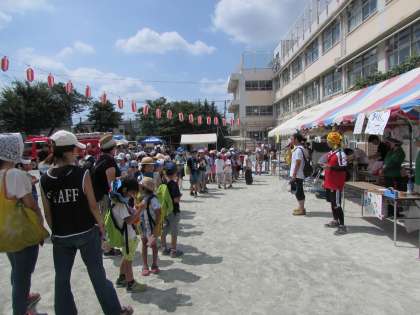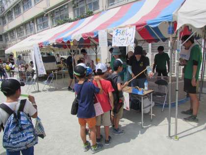 若林こどもまつりが始まりました。たくさんの子どもたちが参加してくれています。どのお店も楽しそうですね。先生たちのお店はおかしつりです。ぜひ、来てくださいね!