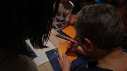 日光彫り特有のひっかきの使い方を教わります。