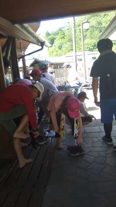 足湯を満喫した6年生がいよいよトレッキングに行きます。