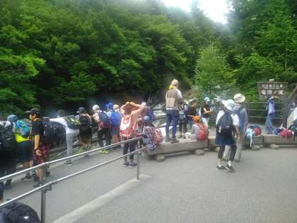 竜頭の滝を横に見ながら、中禅寺湖に向かいます。間もなくハイキングもおしまいです。