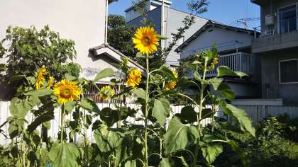 3年生が栽培したひまわりが、立派な花を咲かせています。