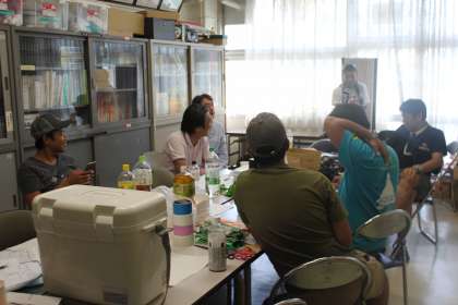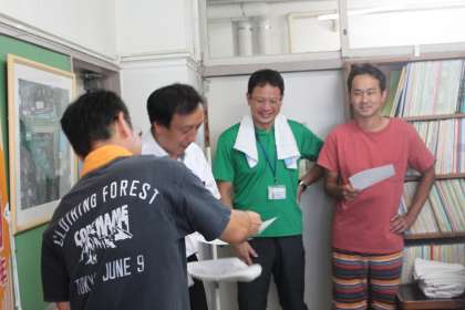 お昼すぎ方おやじの会の皆さんが若小に集まり、準備を進めます。