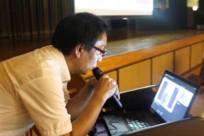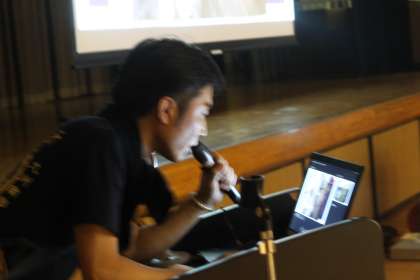 スクリーンに映された絵本の画像を観ながら、お父さんたちのお話を聞きます。