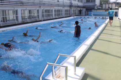 高学年の子たちがやる気満々でウォーミングアップをしています。