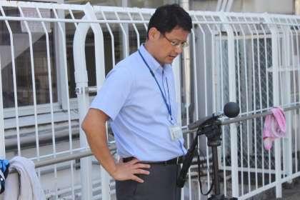 副校長先生は険しい表情で熱中症指数計を観ています。