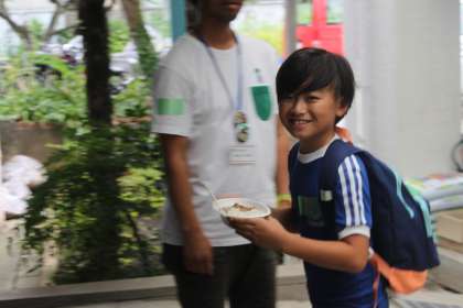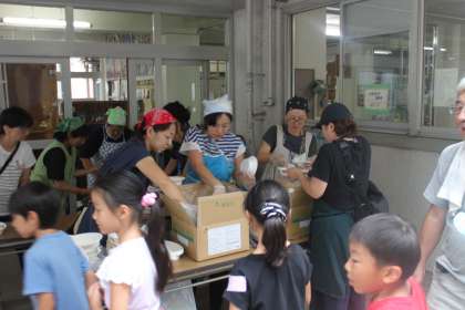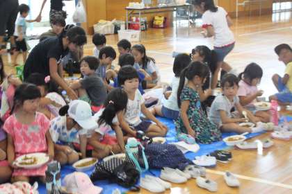 最後にみんなでアルファ米を使ったカレーライスをいただきました。