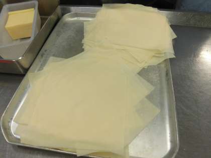 1.春巻きの皮を1枚ずつはがします。