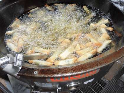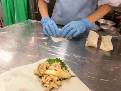 春巻きは全部で410本作りました。一本一本包むのは大変でしたが、食缶が空っぽになっているのを見ると、大変さも吹き飛びました。なによりのご褒美です。