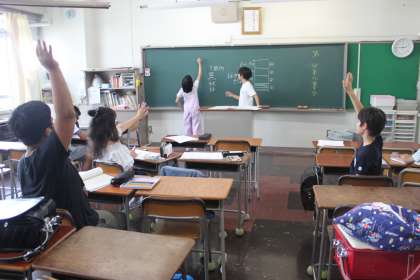 5年生と6年生が委員会ごとに分かれて会合を行います。