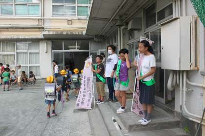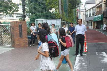 若小では地域の皆様にもご協力をいただき、早速元気なあいさつの声が響いていました。