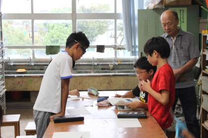 6年生は図工の時間に切り絵を行います。