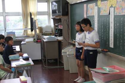 学習のまとめとして、6年生が運動会係活動の重要性や心構えを説明に来ました。