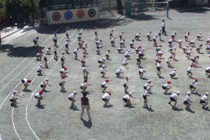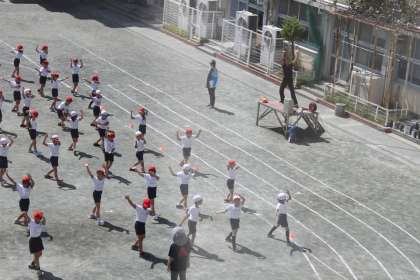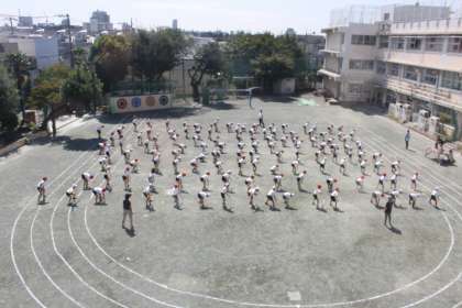 中学年の子達は、校庭一番のりで運動会練習をしました。