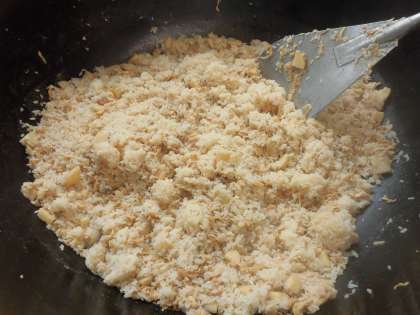 具とごはんがきれいにまじり、出来上がりです。この後クラス分けをします。この量でおよそ100人分です。