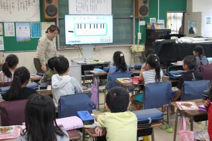 1年生は音楽の時間に、鍵盤ハーモニカを使った活動をしています。