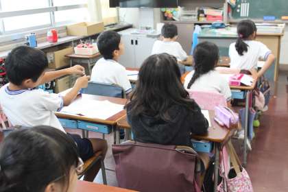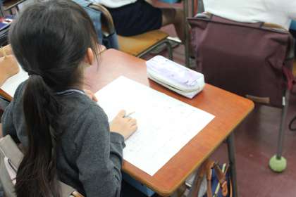先生の説明をしっかりと聴いて、丁寧に鉛筆を進める3年生。