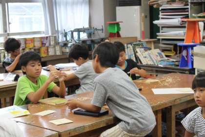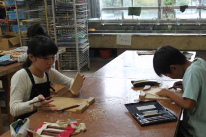 彫刻刀の扱いも慣れて、楽しそうに彫り進みます。