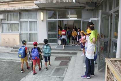 素晴らしい活躍ぶりの応援団に、登校してきた子たちも無関心ではいられません。