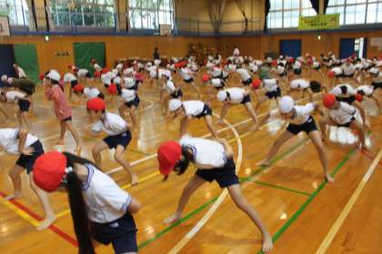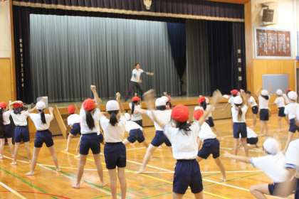 3年生と4年生が運動会で披露するソーラン節。