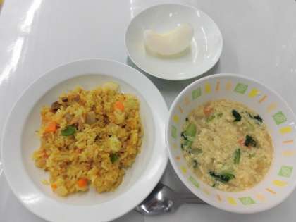 【献立】ツナピラフ・チーズのふわふわスープ・梨・牛乳
