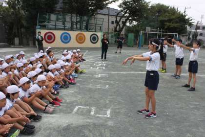 引き締まった雰囲気の中でも元気いっぱいの若小の子たちでした。