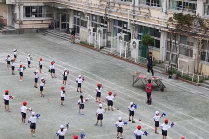 かわいい若小の1年生たちは、運動会に向けて準備万端整っています。