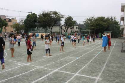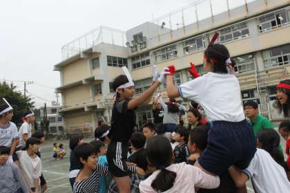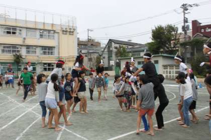 高学年が騎馬戦の練習をしました。