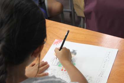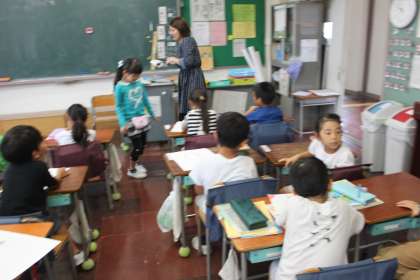 1年生が楽しかった運動会のことについて、絵日記に表しています。