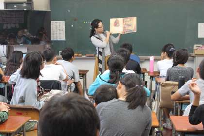 高学年の教室には、保護者の方がおみえになり、読み聞かせをしてくださいました。