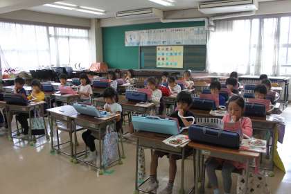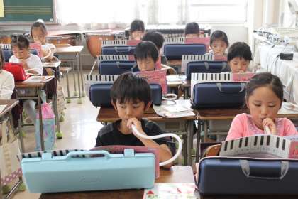 先生の後に続いてしっかりと演奏できる1年生たちでした。