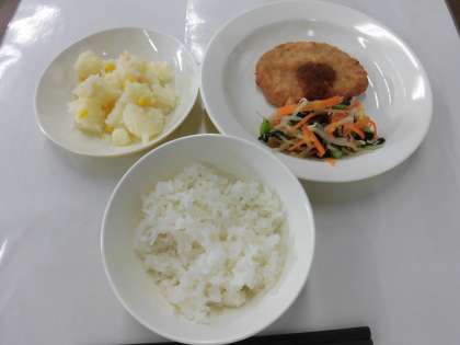 【献立】ごはん・豆腐入りハンバーグ・和風ソース・おひたし