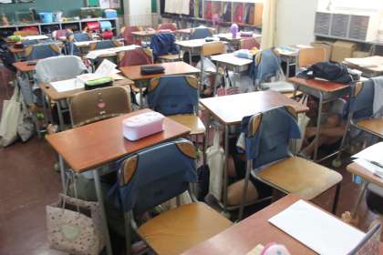 今日の2時間目に、地震を想定した避難訓練をしました。