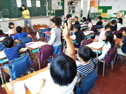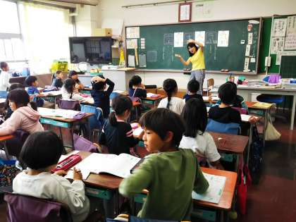 1年生は漢字の学習をしています。