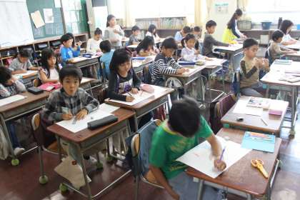 ねらいをもって、訴求力の強いポスターを作る2年生たち。